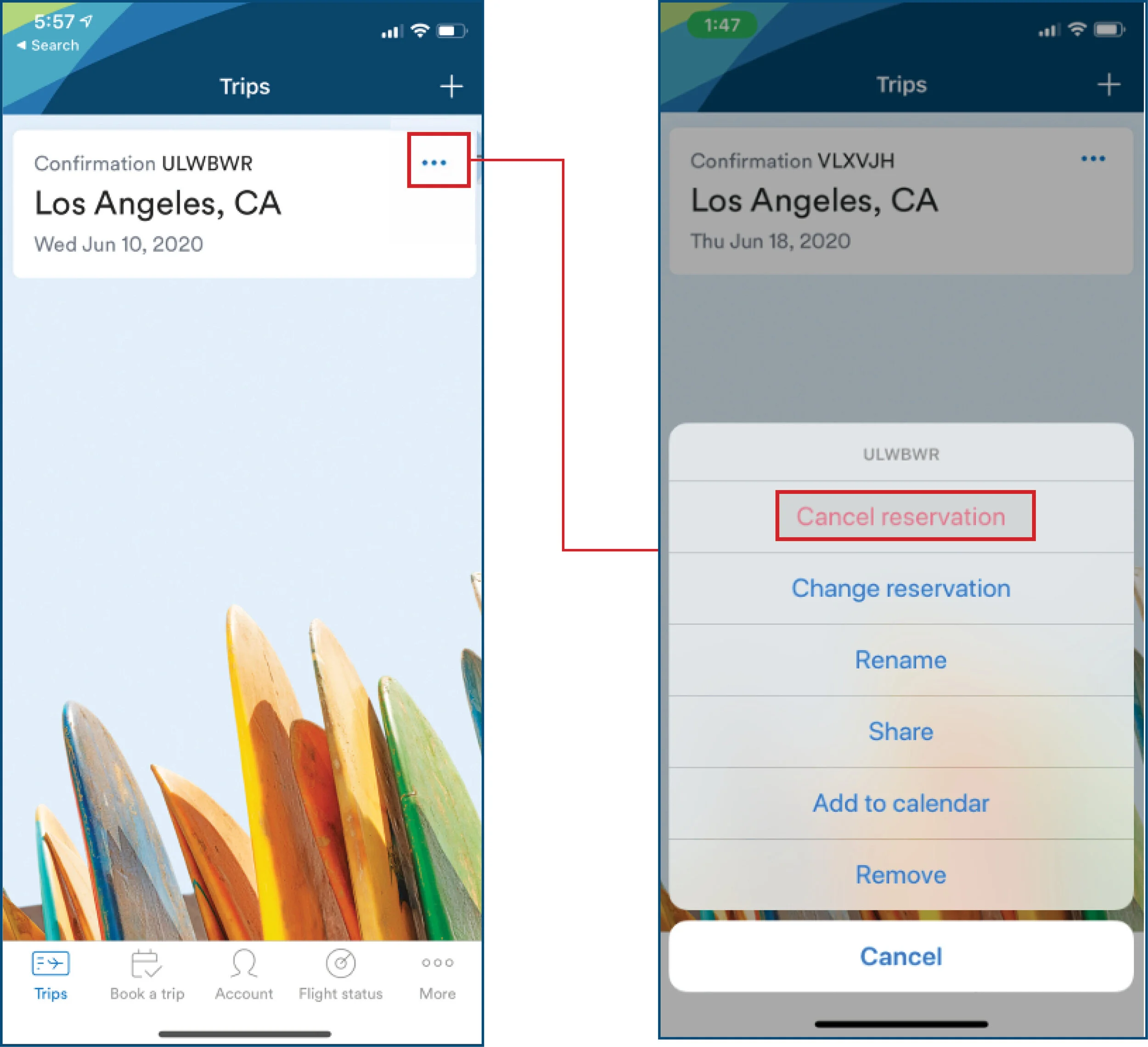 Screenshots of Where to Cancel A Flight
