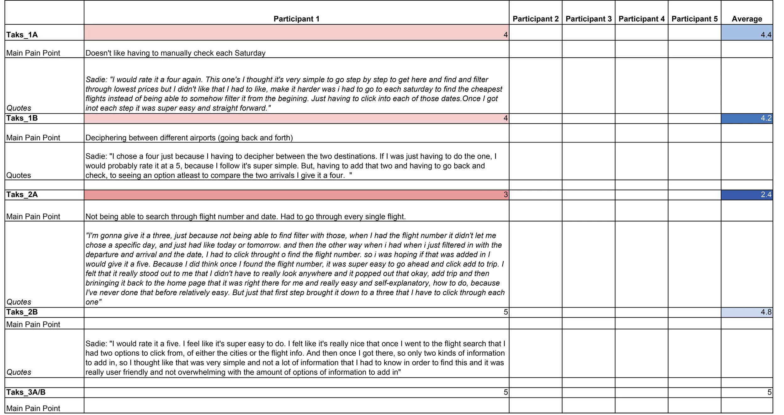 "I had to look through a bunch of them before I found the one I was looking for. It would have been easier to have a calendar picker and or have the flight number on each one when searching by departure city" - Participant 5