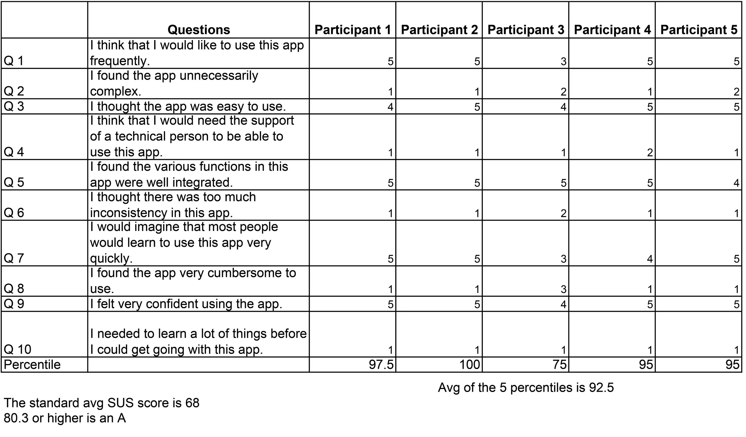 After participants completed all tasks, they were to answer the ten SUS questions based on their experience and impressions participating in this study